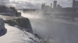 Niagara Falls 'frozen over' as icy weather grips United States The ferry service in New York has been suspended and 'warming centers' even in the tradutinally temperate deep south. Plunging temperatures in Texas brought rare snow flurries and dozens of weather related vehicle crashes were reported in just 24 hours. The National Weather Service reported ...
